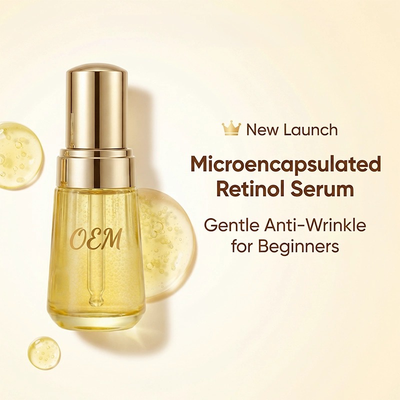 ผลิตภัณฑ์บำรุงผิวหน้าแบบเฉพาะบุคคลเซรั่มเรตินอลไมโครแคปซูลลดริ้วรอยสำหรับผู้เริ่มต้น สูตรอ่อนโยน
