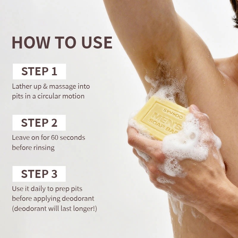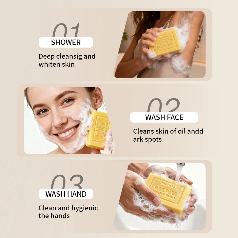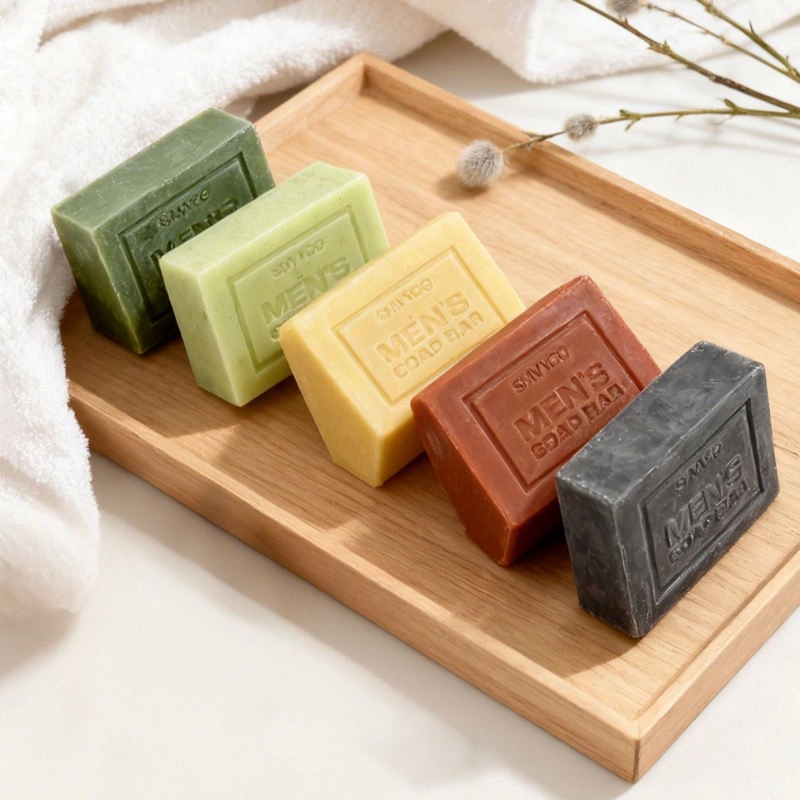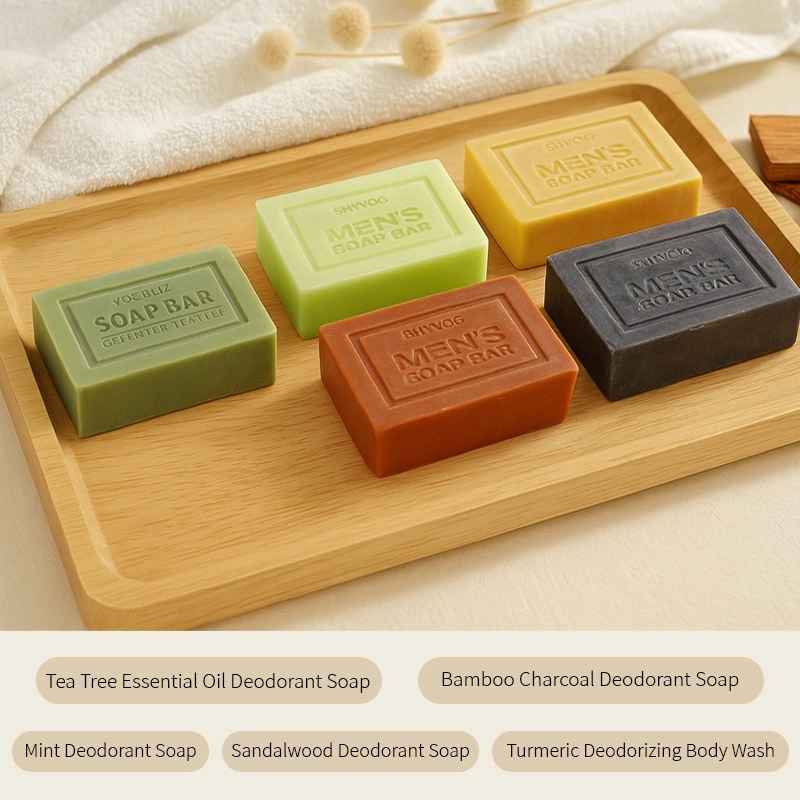 ชุดสบู่ระงับกลิ่นกาย 5 สูตรสำหรับผู้ชาย โดดเด่นด้วยกลิ่นหอมและฟังก์ชั่นการใช้งานเฉพาะจุด ผลิตจากสารสกัดจากพืชธรรมชาติเพื่อการทำความสะอาดอย่างอ่อนโยนและระงับกลิ่นกายได้อย่างมีประสิทธิภาพ