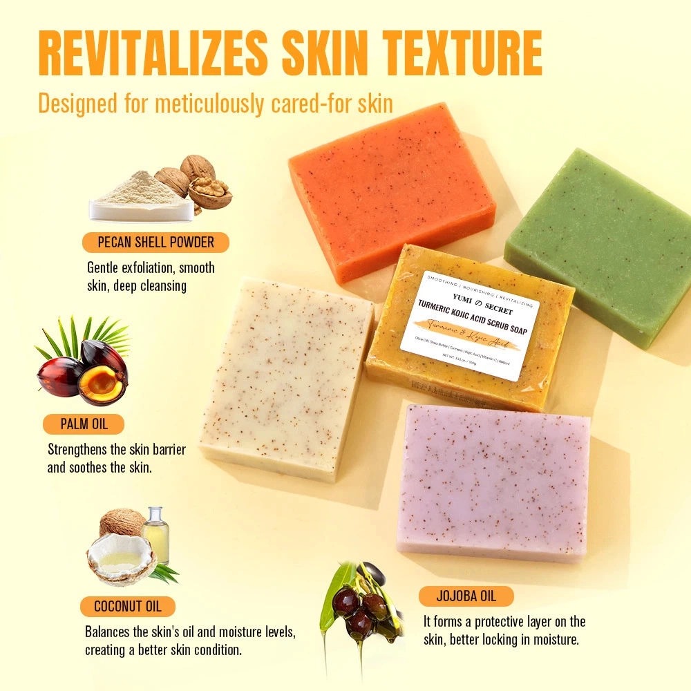 สบู่ขมิ้นทำมือจากสมุนไพรนี้ ผสานส่วนผสมจากธรรมชาติที่เป็นมังสวิรัติ พร้อมคุณสมบัติในการบำรุงผิวให้กระจ่างใสและลดสิวอย่างมีประสิทธิภาพ ช่วยลดความหมองคล้ำ พร้อมทำความสะอาดผิวอย่างอ่อนโยนทุกวัน เหมาะสำหรับทุกสภาพผิว ได้รับการรับรองมาตรฐาน CPNP และ HALAL สบู่ขมิ้นก้อนนี้พร้อมให้บริการผลิตสินค้าภายใต้แบรนด์ของคุณเอง (OEM) พร้อมตัวเลือกบรรจุภัณฑ์ที่ปรับแต่งได้ตามแบรนด์ของคุณ
