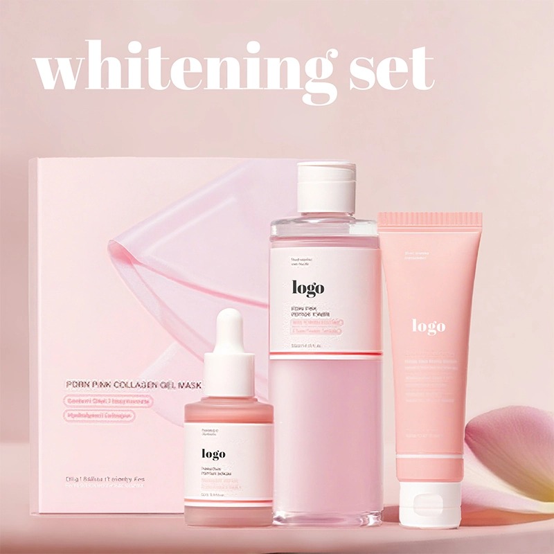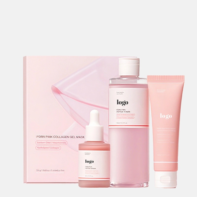 ชุดบำรุงผิวหน้า Salmon Pink Peptide Brightening Set – ชุดบำรุงผิวครบชุด 4 ขั้นตอน (โทนเนอร์ เซรั่ม ครีม และมาส์กเจล) ที่อุดมไปด้วยสารสกัดจากไข่ปลาแซลมอน, PDRN, สารประกอบเปปไทด์ 5 ชนิด, ไนอะซินาไมด์ และกรดไฮยาลูรอนิก ช่วยปรับสีผิวให้สม่ำเสมอ เติมความชุ่มชื้นอย่างล้ำลึก เสริมความกระชับ และปรับผิวให้เรียบเนียน เหมาะสำหรับผิวหมองคล้ำ หยาบกร้าน หรือมีริ้วรอยก่อนวัย สูตรอ่อนโยน สะอาด ปลอดภัย – สามารถสั่งทำแบรนด์ส่วนตัวพร้อมบรรจุภัณฑ์แบบกำหนดเองได้